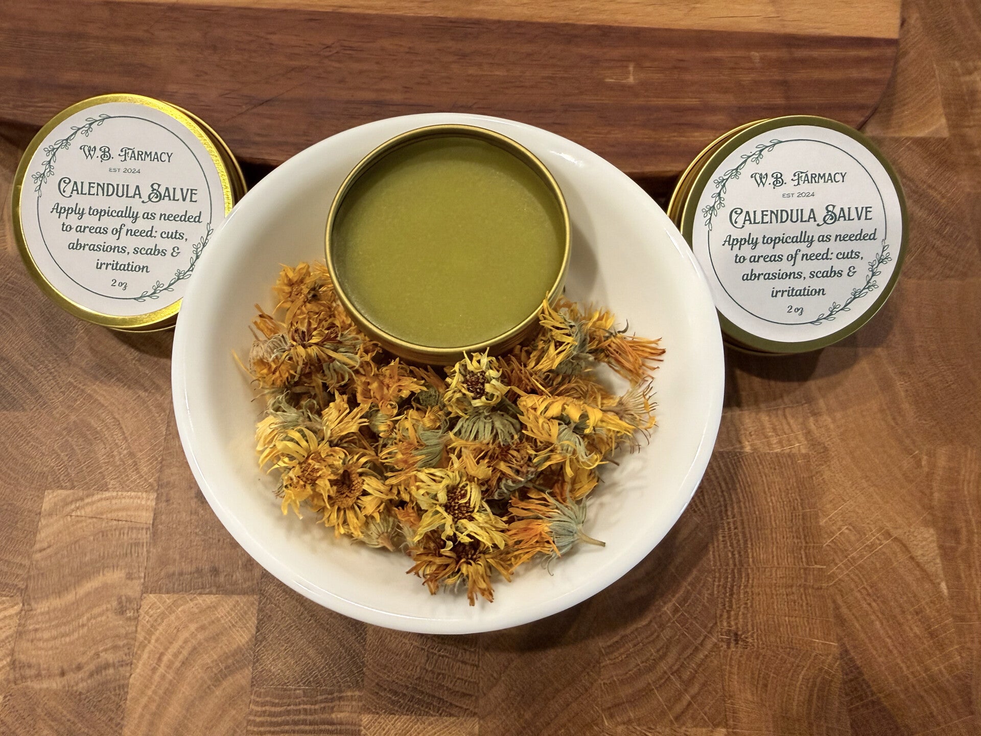 In its basic form, a salve is a healing or soothing ointment, cream or balm that is applied to the skin. Salves are usually made with an oil that has been infused with a herb (fresh or dried), along with beeswax and perhaps some other natural ingredients, such as essential oils, carrier oils or multiple herbs. The combination of oil and wax make the salve semi-solid, and easy to apply. The higher content of wax will result in a harder ointment (balm), creating a thicker barrier on the skin. Remember, the skin is our largest organ, so it makes sense to have something easy to apply and be absorbed to help our system when it needs a boost.